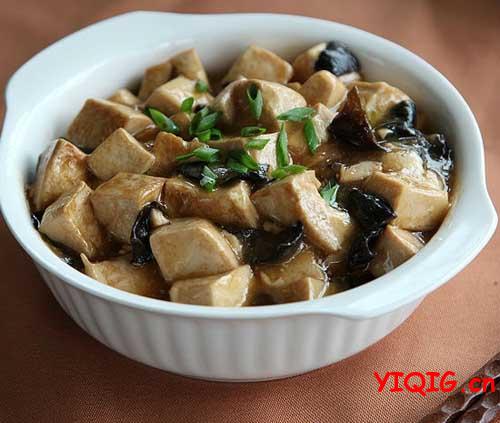 材料:豆腐、木耳、蚝油、花椒、姜葱、生抽、白糖、高汤、水淀粉