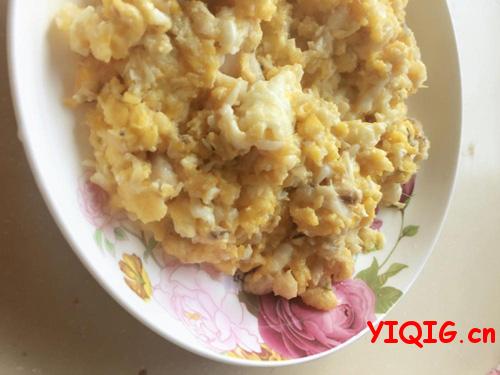 炒鸡蛋的时候全程中小火,火太大鸡蛋容易糊,就不像螃蟹肉啦!而且要注意手法,不用把蛋黄和蛋白混的特别均匀,黄白相间才像螃蟹肉呢!而且鸡蛋可以换成鸭蛋黄,那就更像了。一起过www.yiqig.cn至于鱼肉,我用其他鱼肉实验过多回,唯独小黄花的鱼肉,无论形和味都是相对最好的。