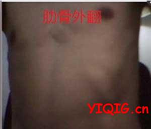 6.常有串珠肋,是由于缺乏维生素D,肋软骨增生,各个肋骨的软骨增生连起似串珠样,常压迫肺脏,使小儿通气不畅,容易患气管炎,肺炎。