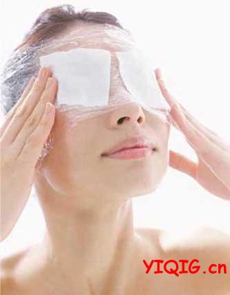 2、将用温水浸湿过的化妆棉敷上眼睛,再用保鲜膜覆上两三分钟。因为蒸汽的作用,眼霜被充分的吸收。为了不与脸部的其他护肤有所冲突,注意最好在在早上护理。