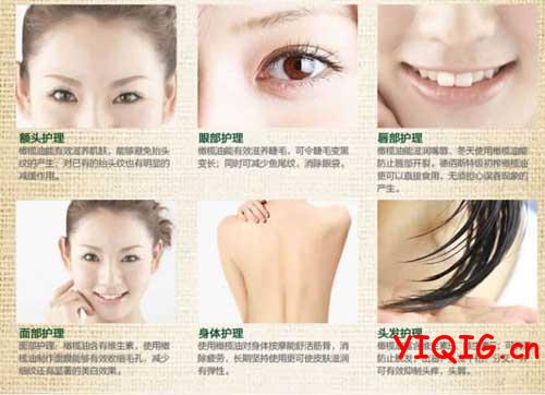 养颜洗完脸后,用橄榄油反复轻轻按摩,再用蒸脸器或热毛巾敷面,能除去毛孔内肉眼看不到的污垢,滋养肌肤,增加皮肤的光泽和弹性,去除细小皱纹。