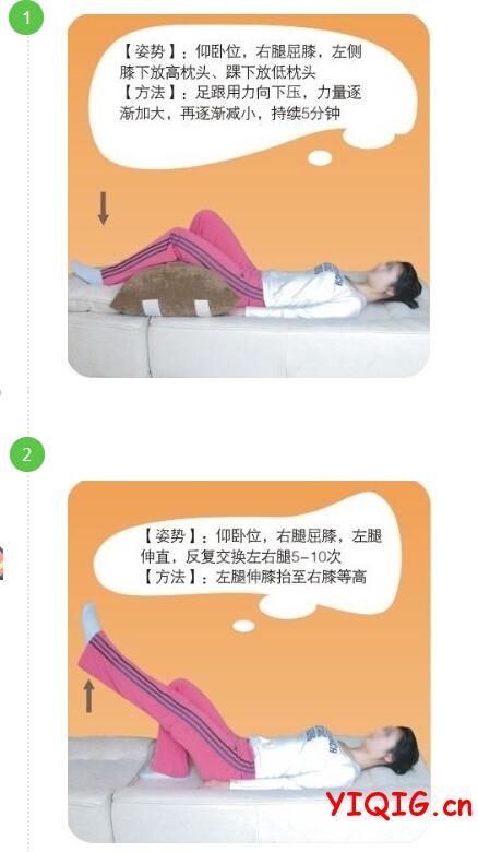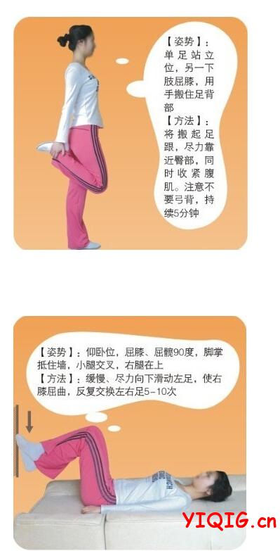 注意:每小时应伸展膝关节一次,一个姿势不要持续30分钟以上;坐位时要保持膝关节舒适;避免长时间跪位和蹲位。一起过www.yiqig.cn