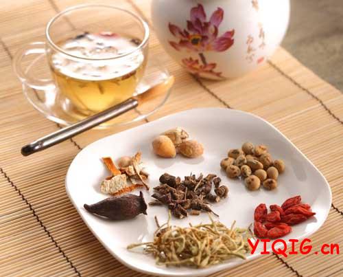 配方:菊花、枸杞、桂圆、红枣各10克,开水冲泡代茶饮。