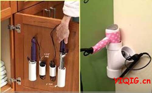 如果你是一个女人,你可能有你的浴室在某个地方储存一些头发设备。你可以使用一些PVC管,以保证他们的安全和良好的组织防止他们破坏或伤害别人。“Y正规”片是完美的,被放置在架子上,或者您可以使用机柜内钉简单的管道来存储您的设备。