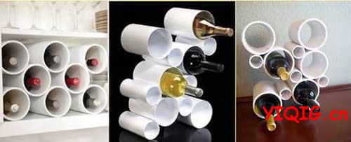 酒瓶架用胶粘在一起来储存您的葡萄酒瓶一些大型PVC管材。你可以使用一些较薄的管道创建的路数之间一个很好的装饰。使用永久性胶水,切割后他们别忘了砂边它们的边缘。