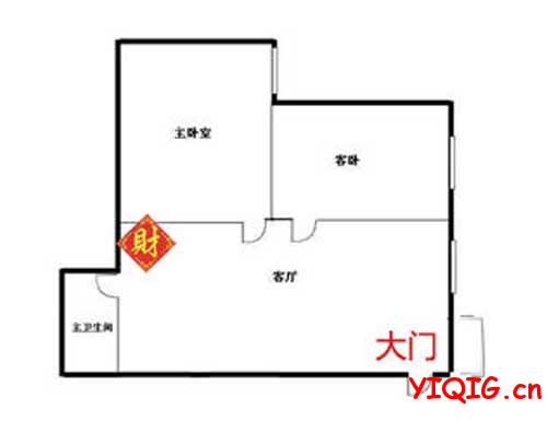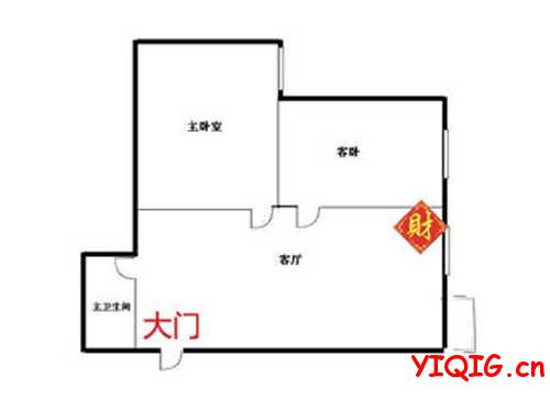 如果住宅门开左边时,财位就在右边对角线顶端上。