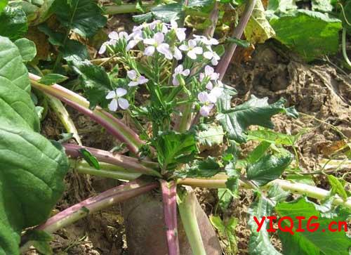 萝卜开花,典型的十字花特征。与油菜、白菜同属十字花科植物。