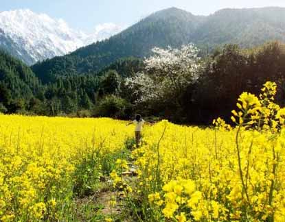 林芝桃花节有三大看点:一是树干雄伟,二是花朵繁茂,三是气势磅礴。林芝盛开的桃花与高耸入云的雪峰连成一片,让人产生致远、博大、壮美的感觉。一路上金黄的油菜花、粉红的桃花,交相呼应。美得扣人心弦,让人措手不及,却又不得不为之倾倒。