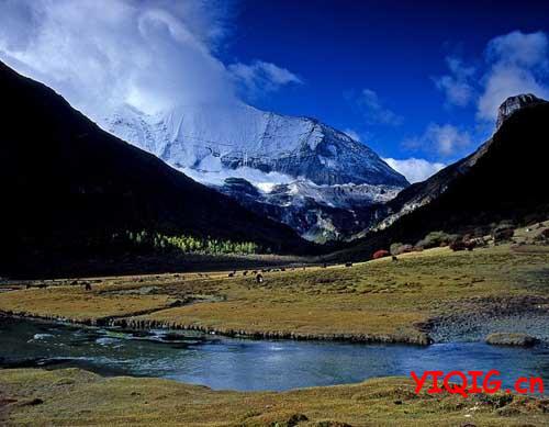 稻城三神山北峰仙乃日6032米,南峰央迈勇5958米,东峰夏诺多吉5958米。三座雪峰洁白,峭拔,似利剑直插云霄。雪峰周围角峰林立,大大小小共三十多座,千姿百态,蔚为壮观。山峰前镶嵌着碧蓝如玉的湖泊和草甸。雪线下冰川直插碧绿的原始森林。雪山、峭壁、陡崖、海子、冰川、草场、森林、溪流,给我们营造出一片静谧、安详的世外之境。