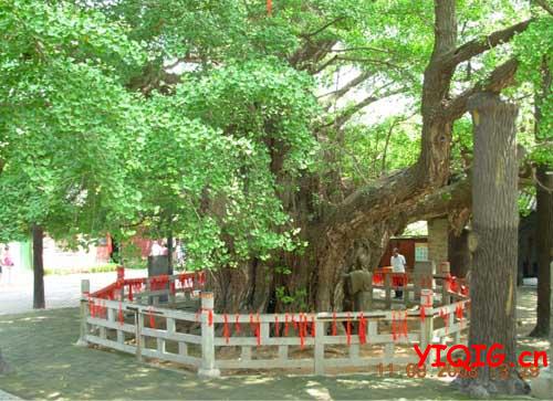 北京潭柘寺的大殿前,有一棵银杏树。这棵树植于唐贞观年间,树龄已过千年。高达40余米,直径4米有余,胸干周长9米,遮阴面积达600平方米,要六、七个人才能合抱。相传在清代,每有一代新皇帝继位登基,就从此树的根部长出一枝新干来,以后逐渐与老干合为一体。乾隆皇帝来寺游玩时,御封此树为“帝王树”,这是迄今为止,皇帝对树木御封的最高封号,其职位远在著名的“五大夫松”和“遮荫侯”之上。