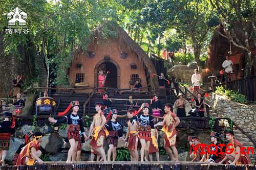 槟榔谷是真正意义上的海南本土文化聚集地,它的一切东西都是原汁原味的“海南味”。这里有正在消失的黎族传统建筑船形屋,有被专家喻为“人体艺术的敦煌壁画”的黎族绣面纹的阿婆,这里可以看到人类在无纺时代所穿的树皮衣,可以目睹岛内仅存的百年谷仓群,还可以看到全岛唯一的明代特大龙被,以及用牛角、圆木、竹子、椰壳等制作的黎族古乐器。此外,钻木取火、低温制陶、黎族民歌等一系列国家非物质文化遗产保护项目,也能在槟榔谷找到。见到当地人时你要竖起大拇指说“布鲁”,意思是“你好”,黎族小妹妹还会邀请你跳一把竹竿舞,尝一下山栏酒、竹筒饭……原始部落的原住民生活让人大开眼界。