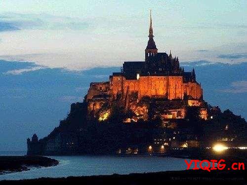 被誉为“西方名胜”的圣米歇尔山位于法国诺曼底和布列塔尼之间,坐落在巨大沙洲中部的岩石小岛上。708年,阿夫朗什镇主教奥伯特遇天使长米歇尔显灵,并在其脑颅上点开一个洞,因此他在岛上最高处修建一座小教堂奉献给天使长米歇尔,使之成为朝圣中心,故称米歇尔山。山的面积很小,直径只有1公里,山头建有比它高出近两倍的修道院。